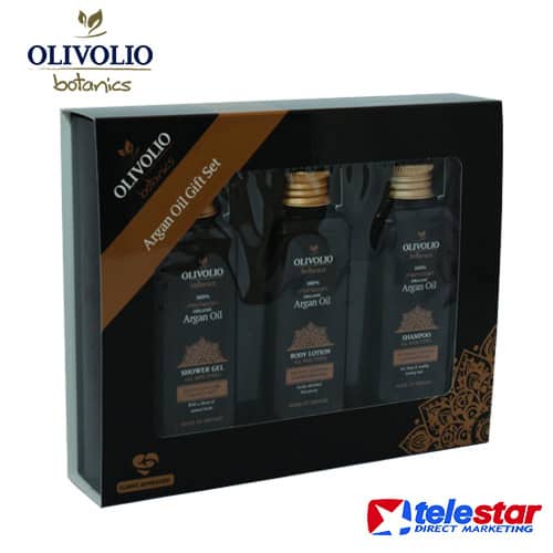 Poklon set Olivolio Argan Oil sa marokanskim arganovim uljem i sastoji se od: