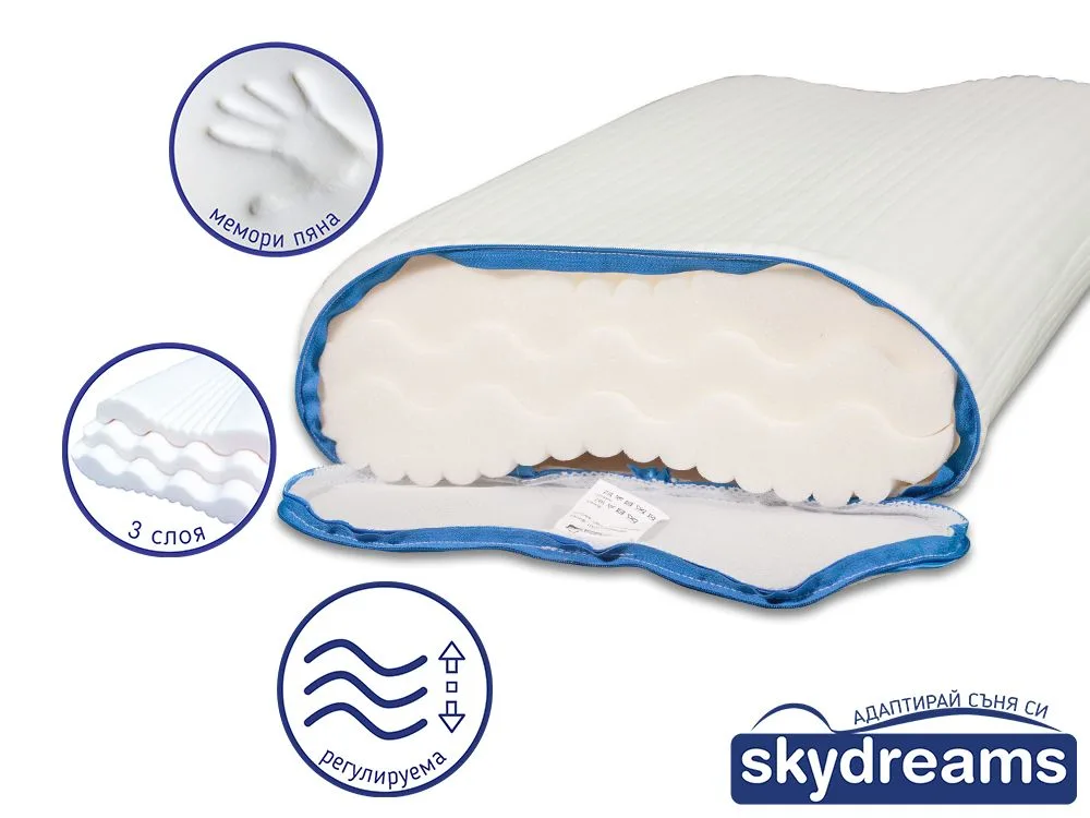 SkyDreams Ergo Sense je jastuk čije je jezgro napravljeno od tri sloja memorijske pene. Ergo Sense memorijska pena povećava udobnost i ublažava napetost u vratu, ramenima i leđima.